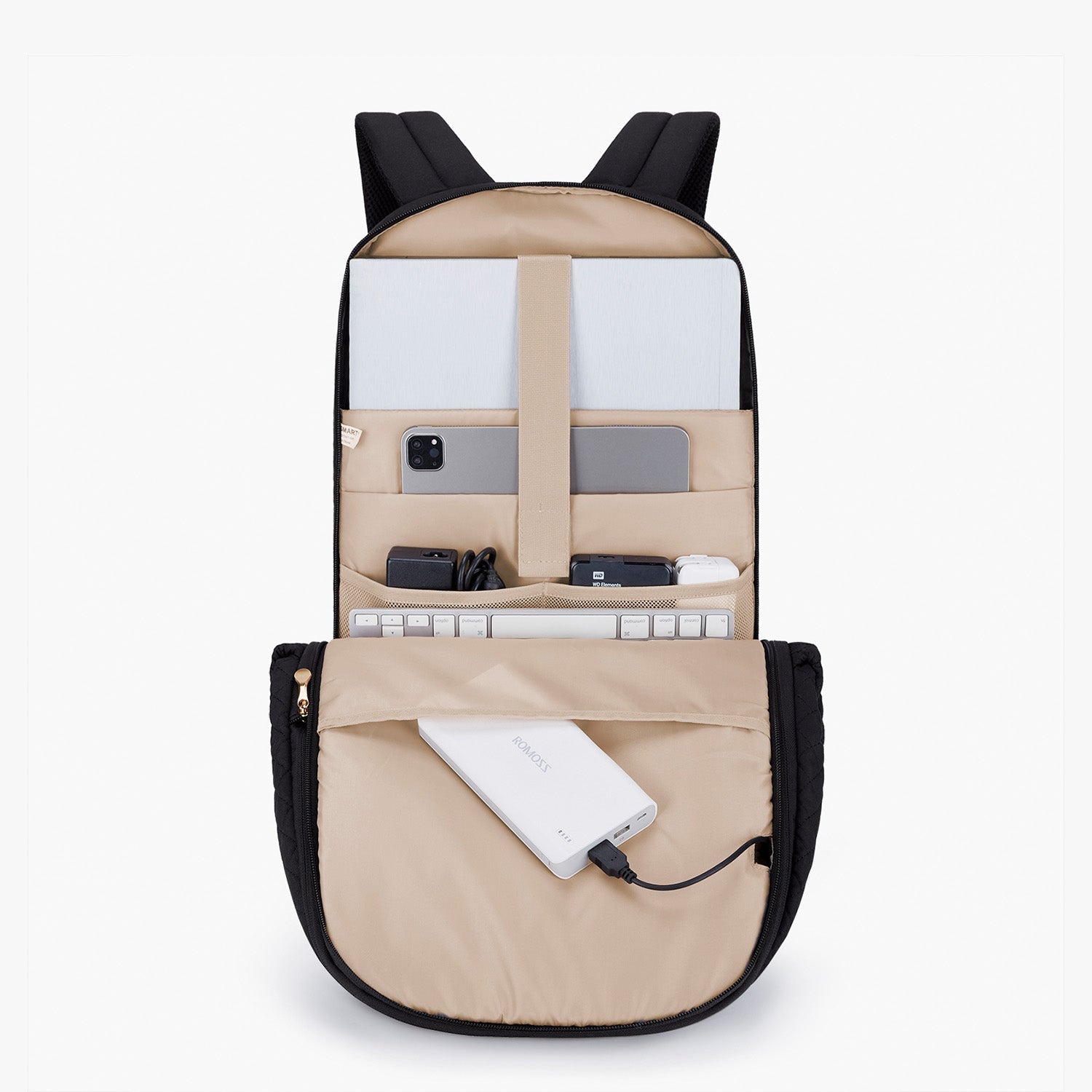 - USB Charging Port: With an inside charging cable and an outside USB port, the backpack offers an easy way to charge your devices and no longer need to hold your power bank in your hand while walking or cycling.
