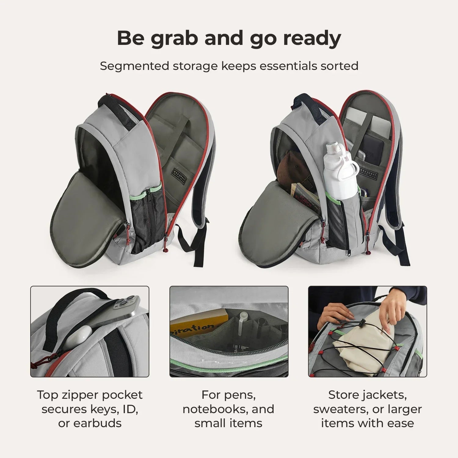 Made for students and young professionals, this 26L backpack keeps up with your busiest days¡ªfrom class to commutes to weekend escapes. Thoughtfully designed with segmented storage, it features a 15.6" laptop compartment, iPad sleeve, and seven external pockets to keep essentials in check. Reinforced to be wear-resistant, the structured bottom stands upright for easier access. Smart. Stylish. Built for whatever¡¯s next.