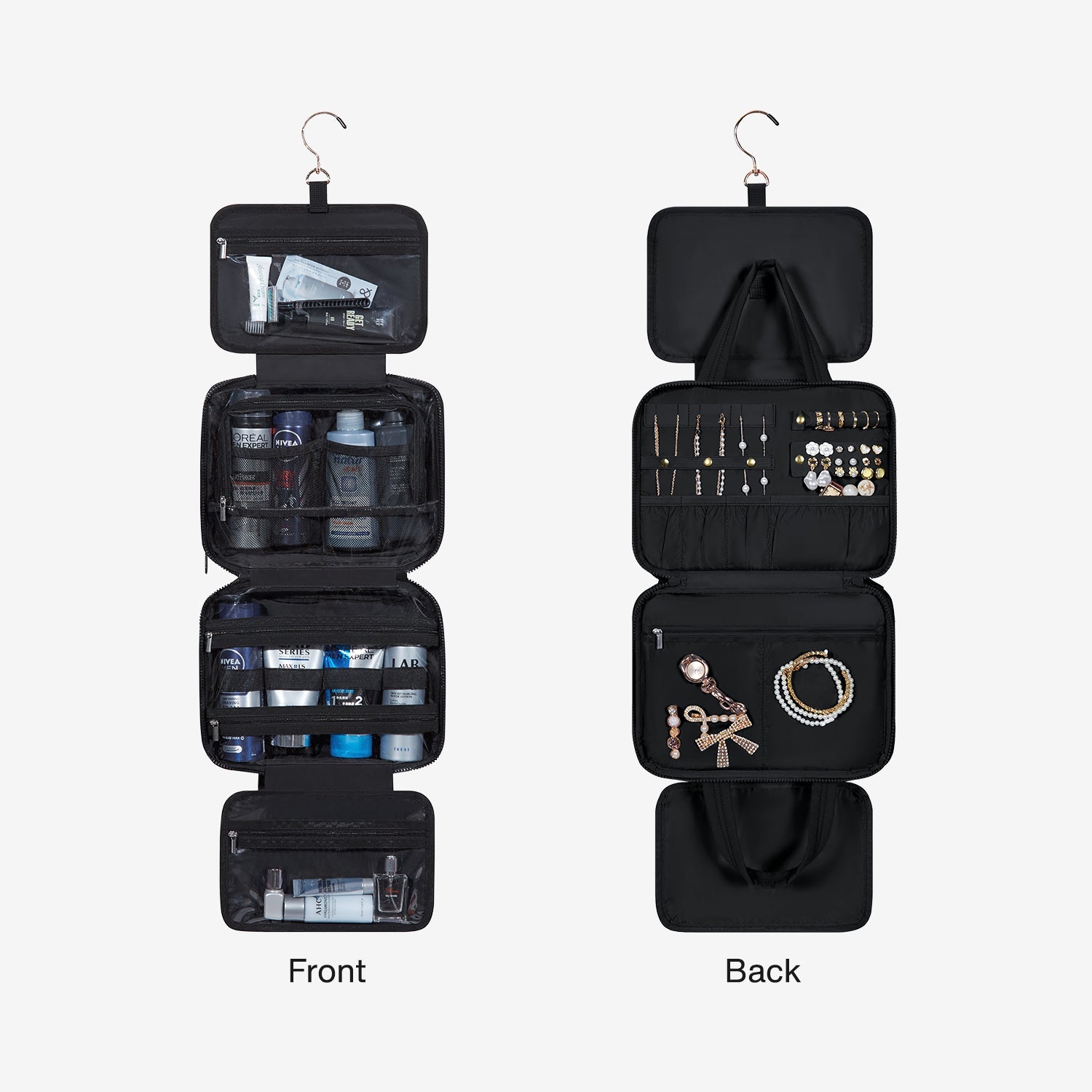 【Practical & Space-saving】The bag can be fully opened and comes with a 360-degree hidden hanging hook, making it effortless to hang and utilize in any setting.